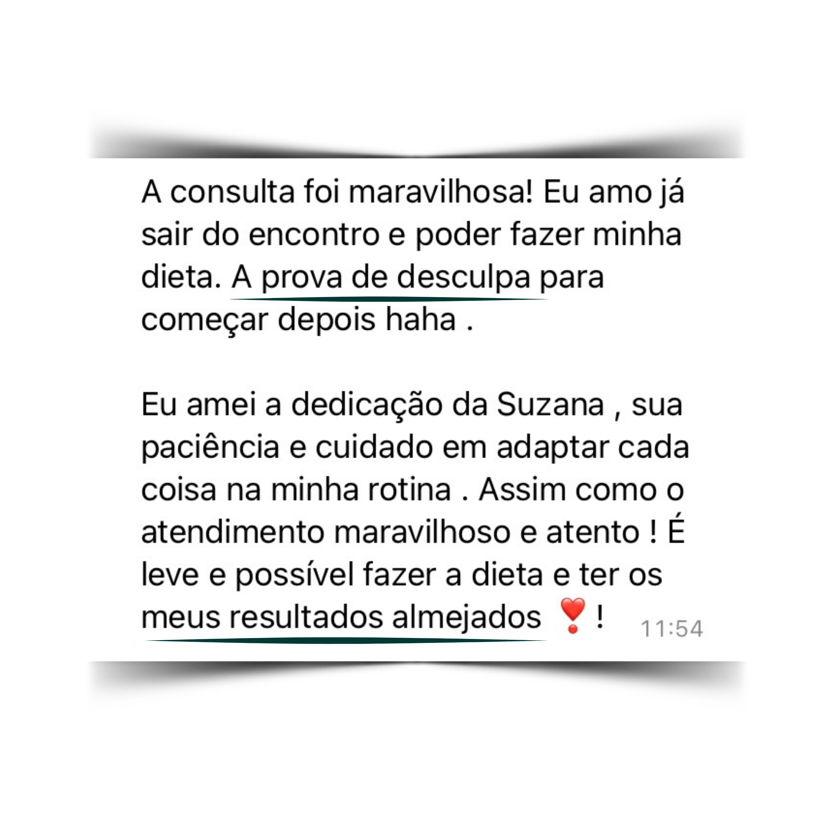 - Número de whatsapp para tirar dúvidas e ajustes com a nutri durante todo o período de acompanhamento